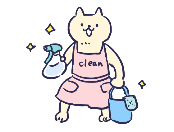 掃除道具を持つ猫